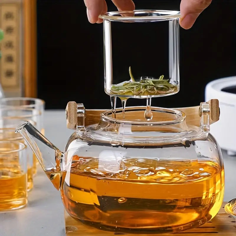 - 1x Chaleira de Vidro com Tampa de Bambu.