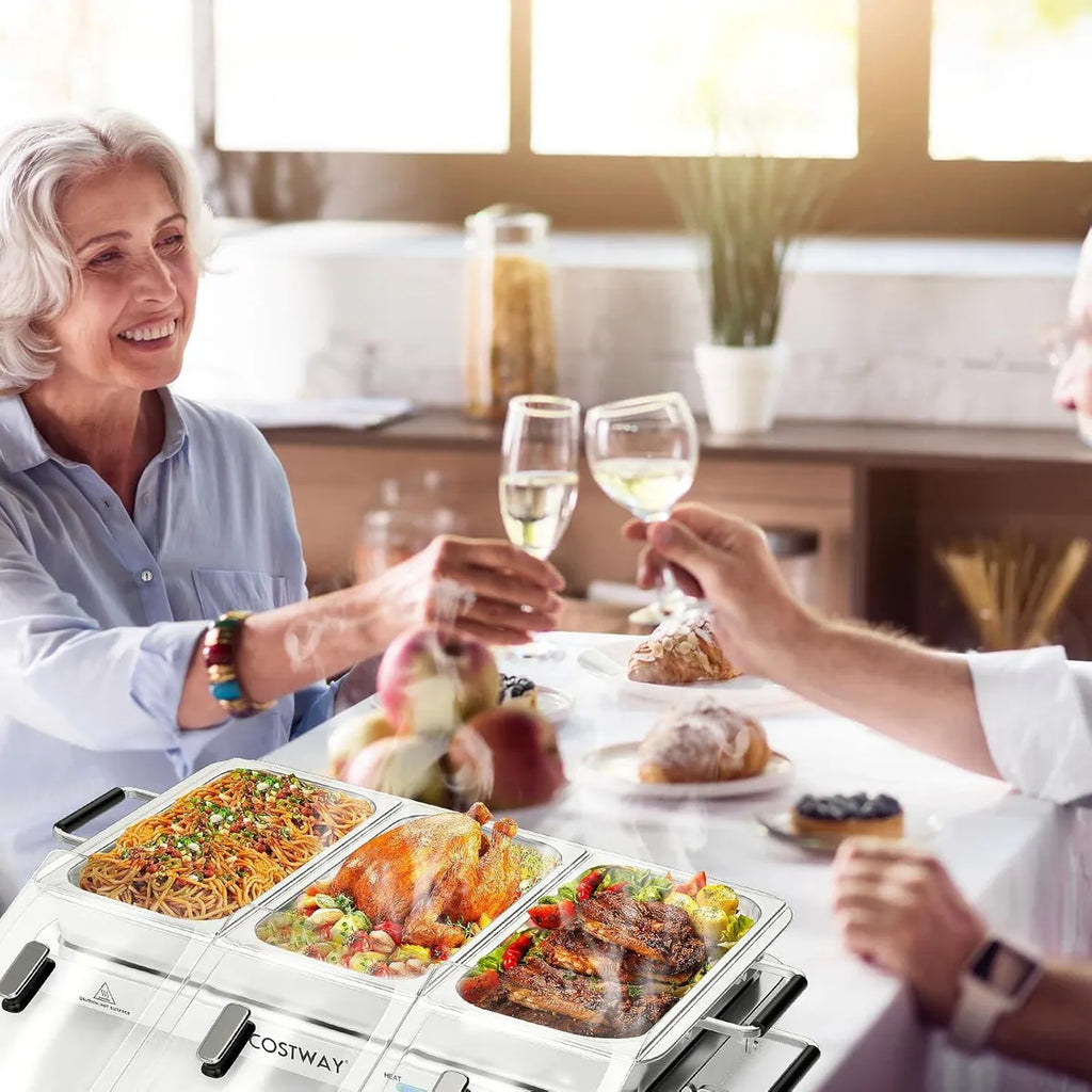 Leve praticidade, elegância e eficiência para sua mesa com o Rechaud Elétrico Costway 3 em 1, o aliado perfeito para manter seus pratos sempre quentes e prontos para servir.