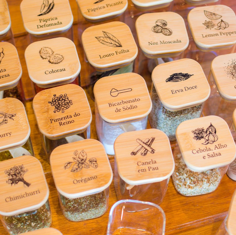 OrganizaGourmet™: Kit 15 Potes de Vidro de 200ml para Temperos (Bandeja Organizadora) (15 Colheres) | FRETE GRÁTIS HOJE!
