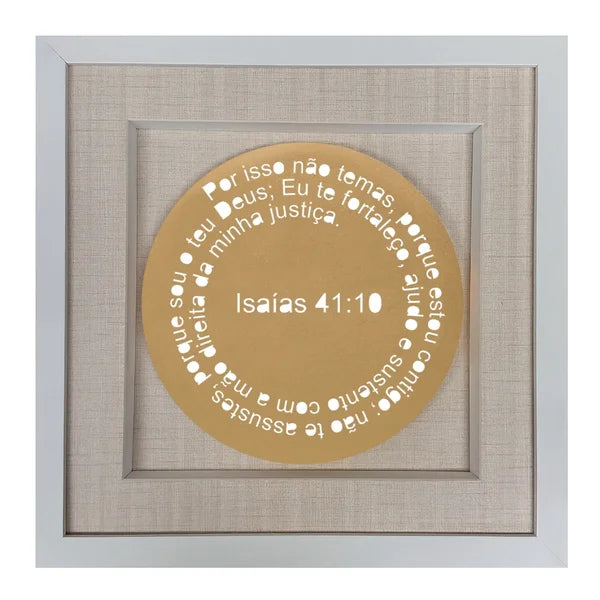 O versículo de Isaías 41:10 é um poderoso lembrete da presença constante de Deus em nossa vida: "Não temas, porque Eu sou contigo." Uma mensagem de força e confiança, ideal para quem busca renovação da fé e a certeza de que nunca está sozinho. Perfeito para trazer paz ao lar e fortalecer o espírito!